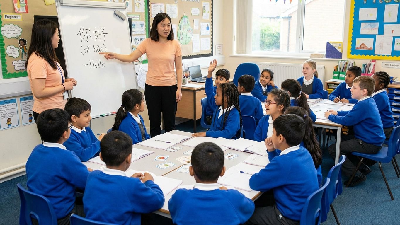 Learning Mandarin in a UK primary school is a fun adventure, starting with the youngest students in Key Stage 1 (ages 5-7). For these little ones, the focus is all about play! They learn new words and phrases through story-led adventures, where a teacher might tell a tale about a dragon and a pearl, acting out the parts together. Movement and action songs are a big part of the fun, helping them remember body parts or animals through songs like a Chinese version of "Head, Shoulders, Knees, and Toes." Simple worksheets with colouring and matching games help reinforce what they've learned in a colourful, engaging way.